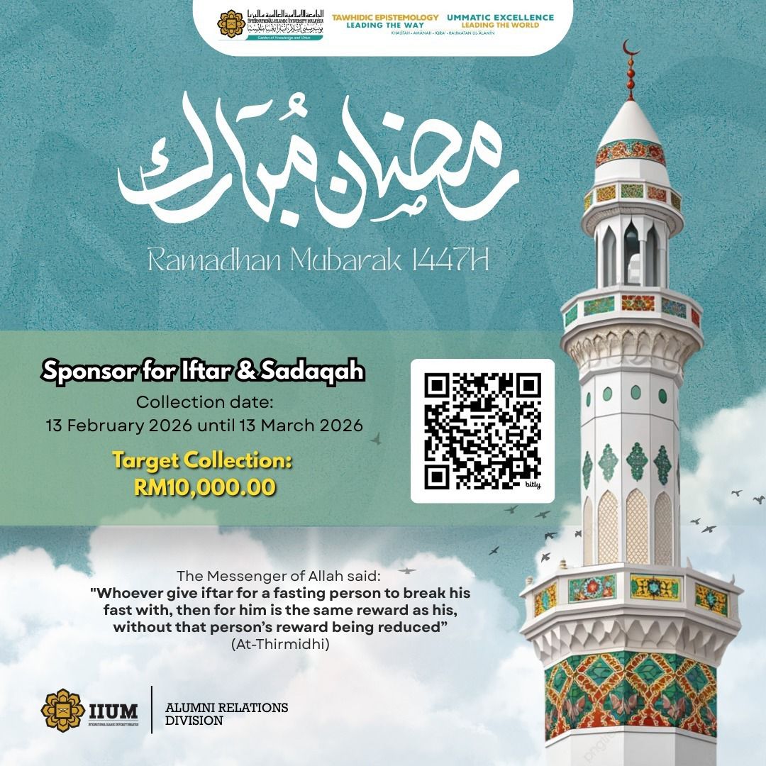 In conjunction with the blessed month of Ramadhan, the Alumni Relations Division, IIUM invites all alumni and members of the community to contribute towards Iftar & Sadaqah sponsorship.